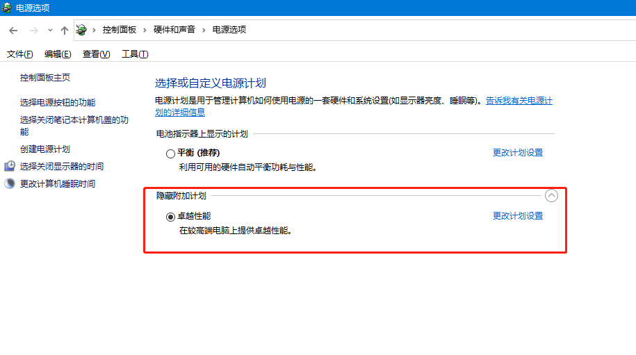 三、 打开 控制面板 \ 硬件和声音 \ 电源选项 ,选择卓越性能