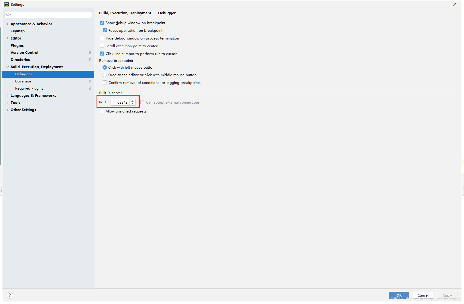 File --> Settings --> Build,Execution,Deployment --> Debugger