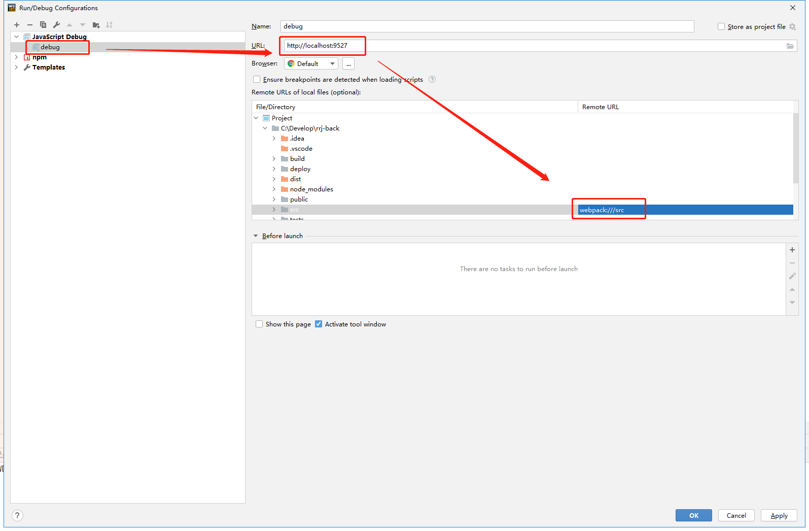 设置debug端口和项目开发端口一致(根据自己的项目端口设置)