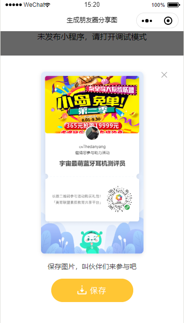 <view class="share-tips">保存图片,叫伙伴们来参与吧</view>