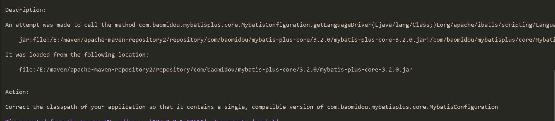 查看错误信息后,mybatisplus,要求用mybatis3.4.6,而activiti用的是mybatis3.4.2,两边有冲突。