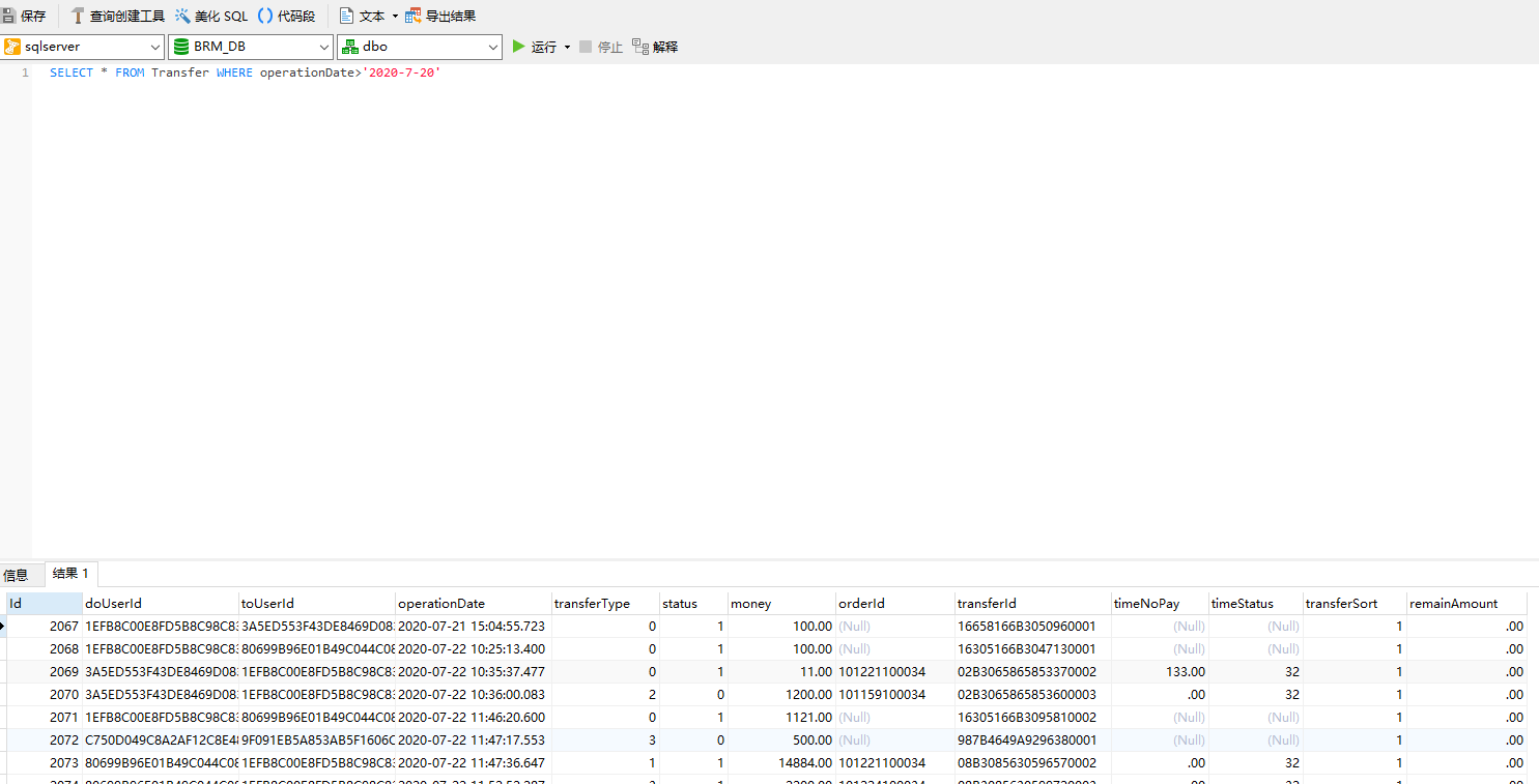 # 接受用户点击的开始时间 start_time = '2020-7-20' # 查询语句 'SELECT * FROM Transfer WHERE operation>"%s"' %start_time
