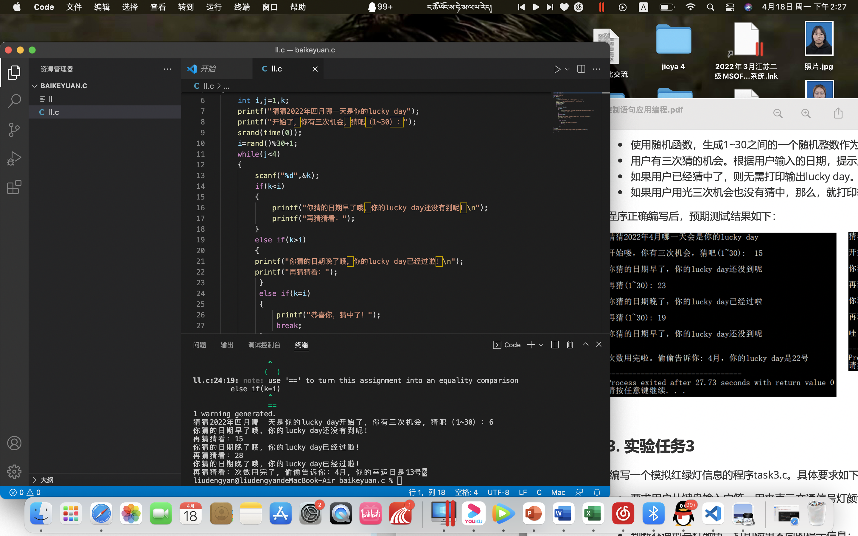 printf("猜猜2022年四月哪一天是你的lucky day");
