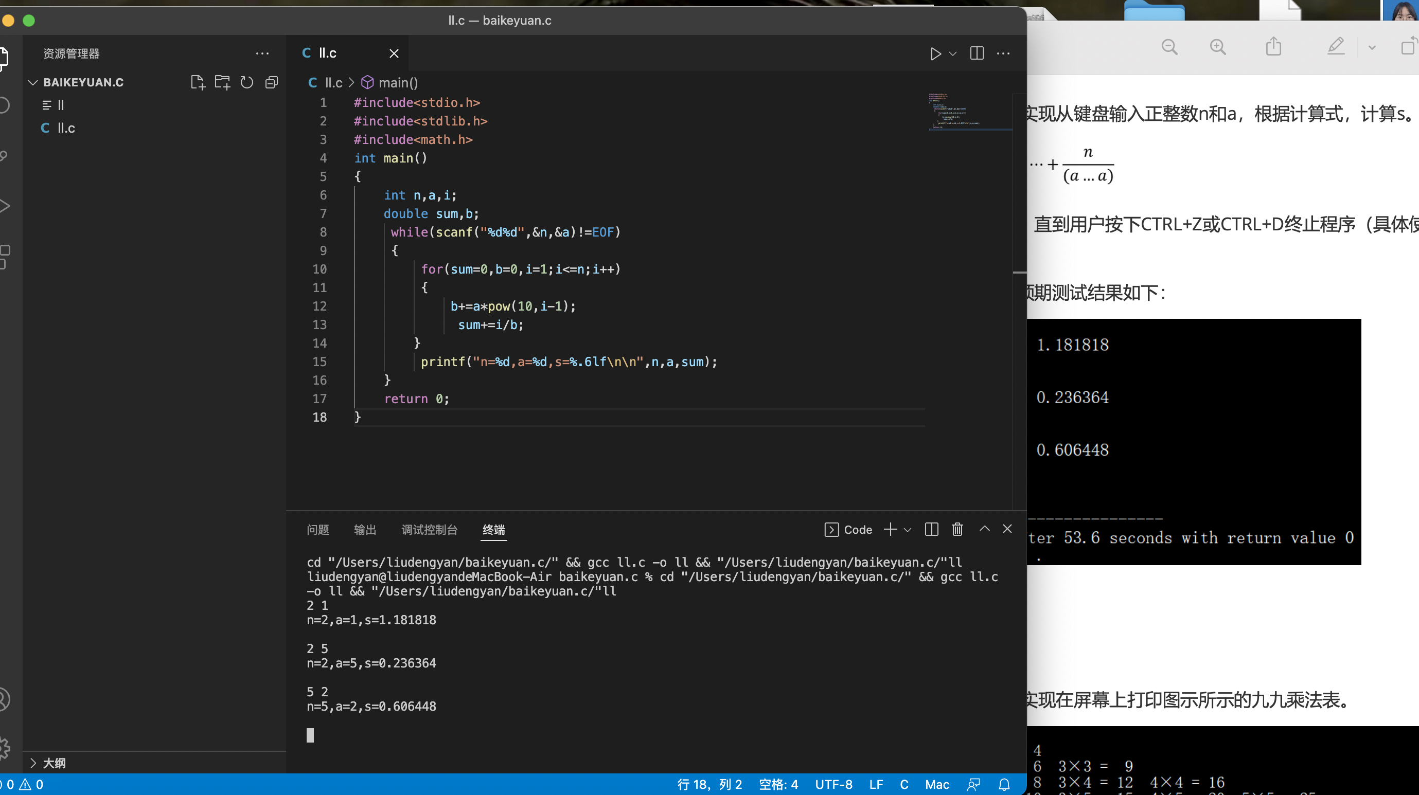 printf("n=%d,a=%d,s=%.6lf\n\n",n,a,sum);