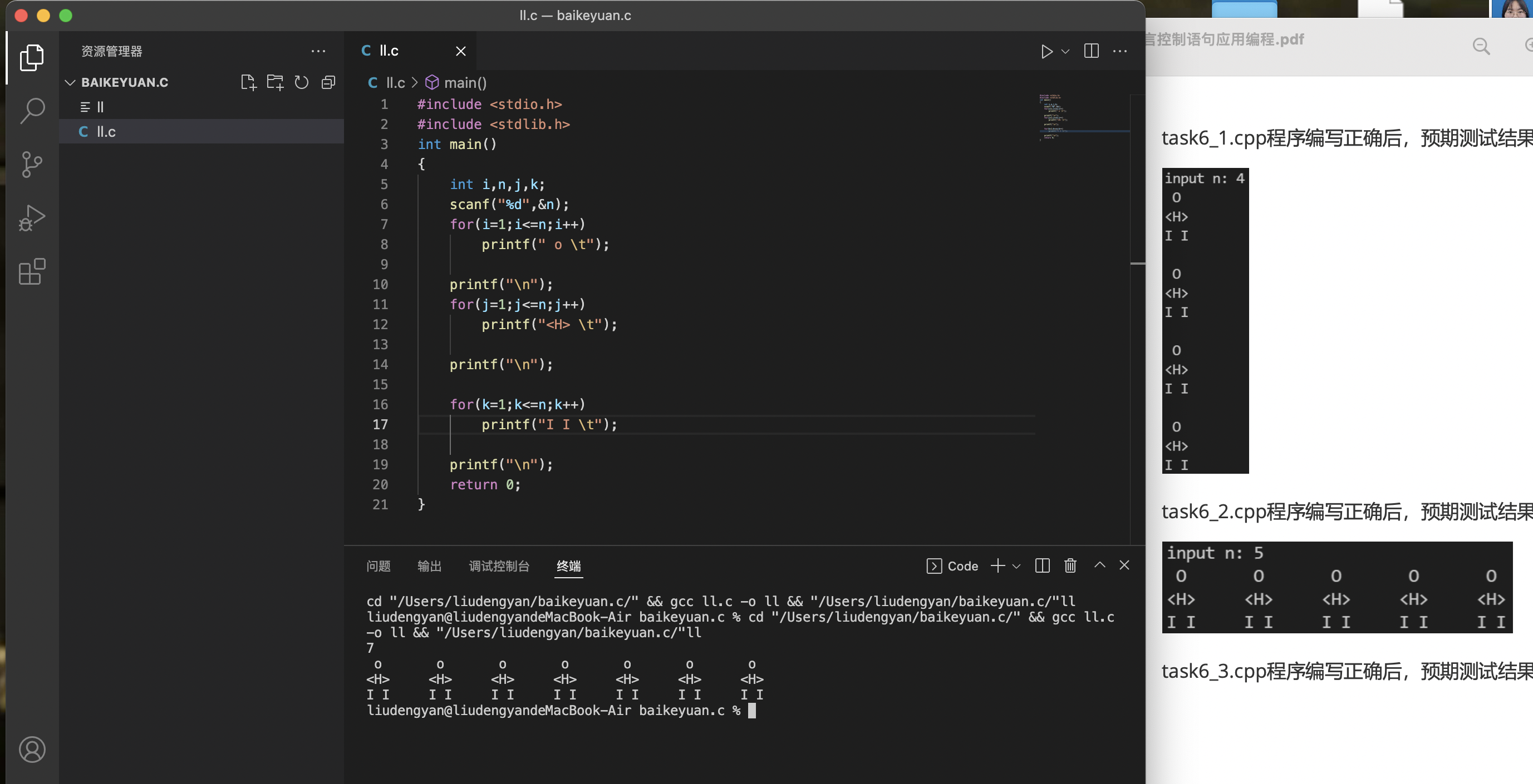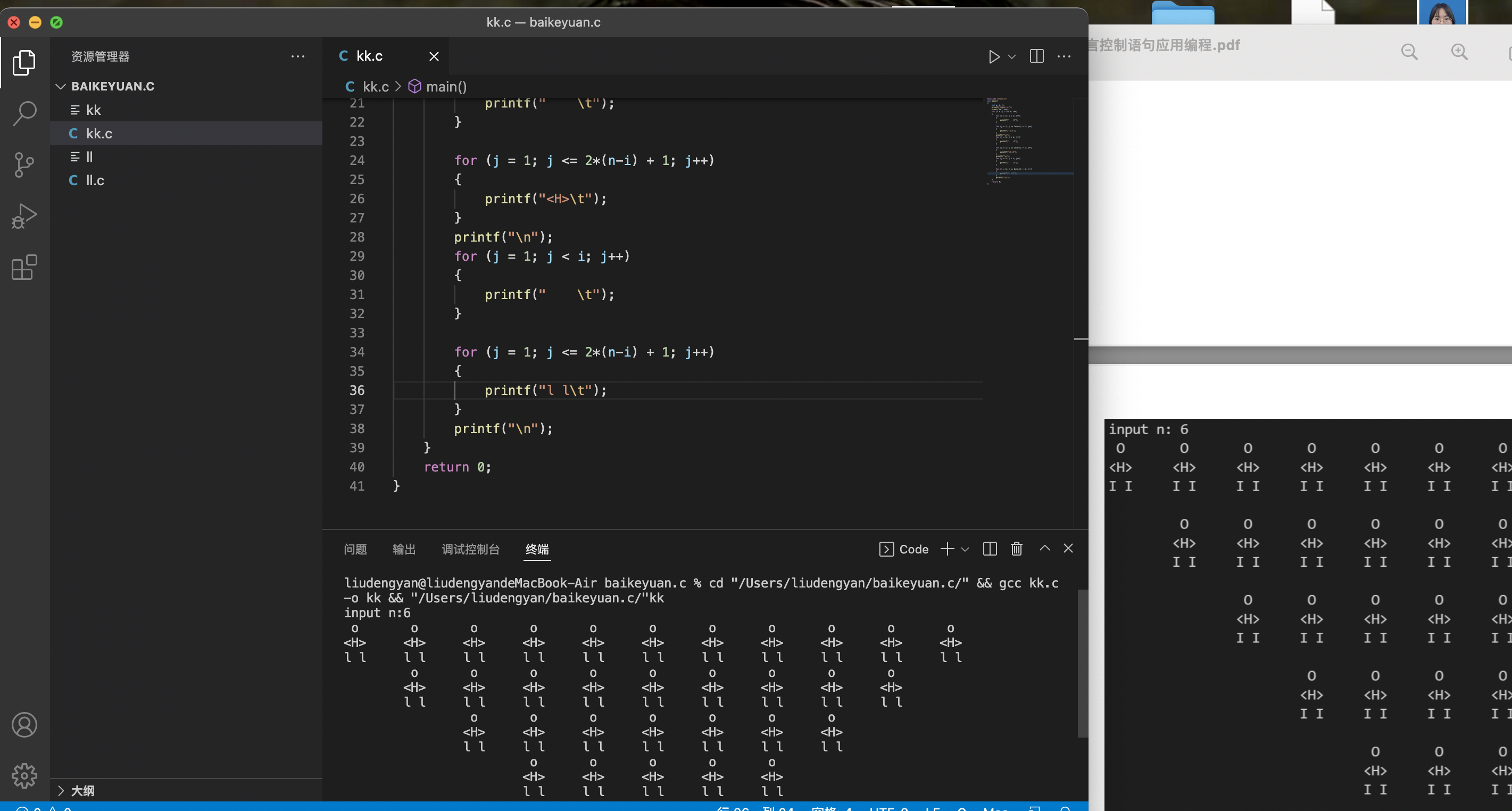 printf("l l\t");