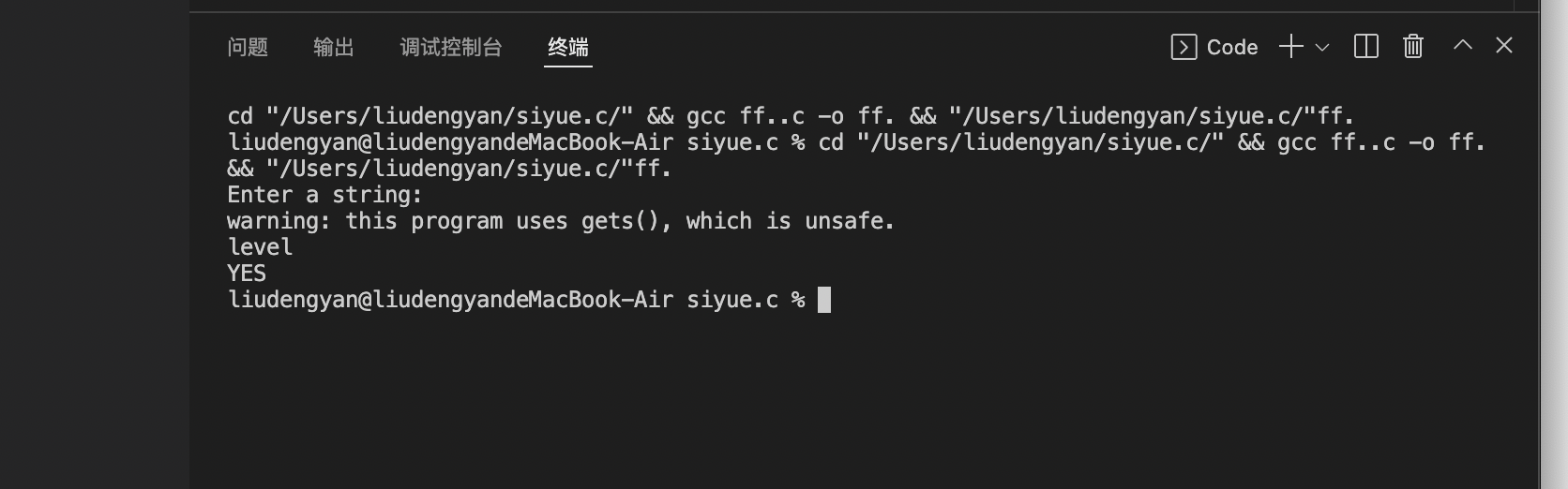 #include <stdio.h> #include <string.h> #define N 80 int is_palindrome(char *s); // 函数声明 int main() { char str[N]; int flag; printf("Enter a string:\n"); gets(str); flag = is_palindrome(str); // 函数调用 if (flag) printf("YES\n"); else printf("NO\n"); return 0; } // 函数定义 // 功能:判断s指向的字符串是否是回文串 // 如果是,返回1;否则,返回0 int is_palindrome(char *s) { char *p, *q; p=s+strlen(s)-1; q=s; while(p>q) if(*p--!=*q++) break; if(p<=q) return 1; else return 0; }