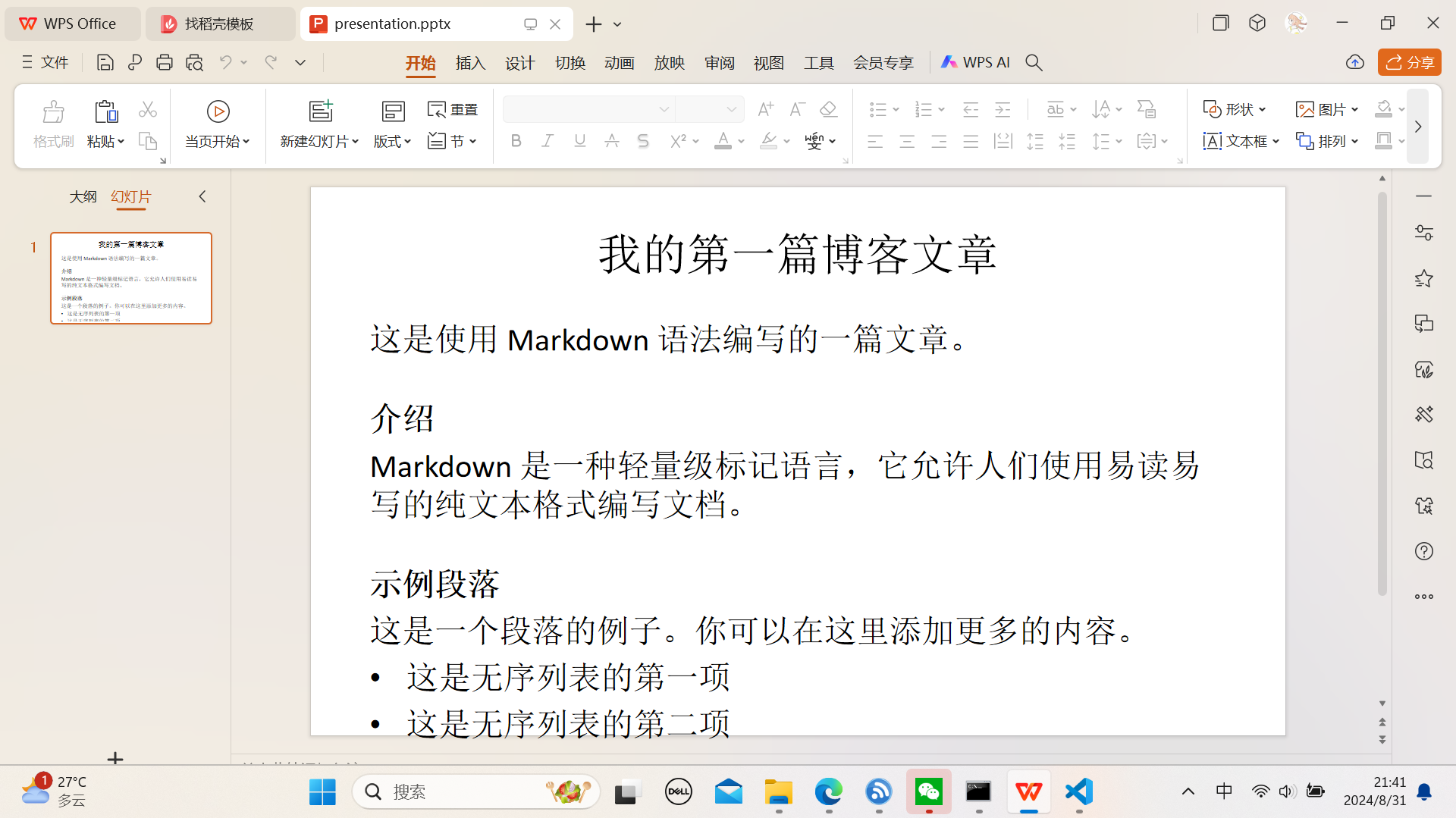 由于没有选择ppt模板是自动生成的,显得有一些简单,也可以自己选择模板