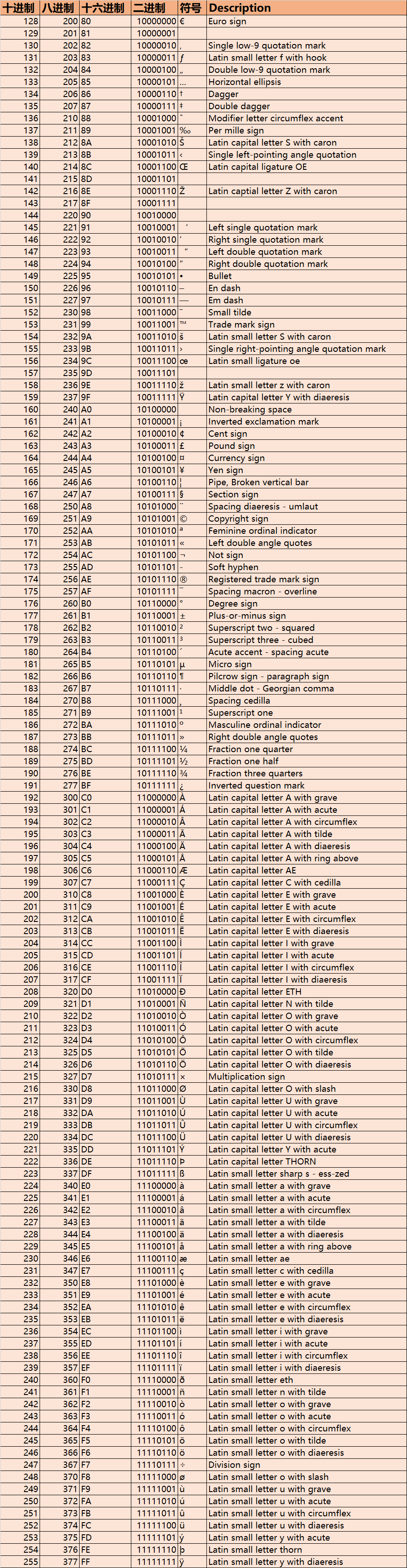 其中扩展位是10000000至11111111(80-FF)(128-255)