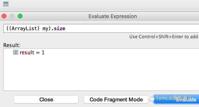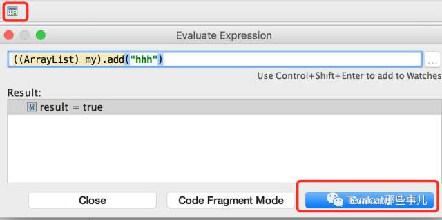 注意,在IntelliJ IDEA里,这个上面红框,像个小计算器的按钮就是临时执行的功能,点击之后,会弹出按钮下方这个Evaluate Expression的框,输入代码,点击右下角的Evalute即可。返回值会显示在Result处。