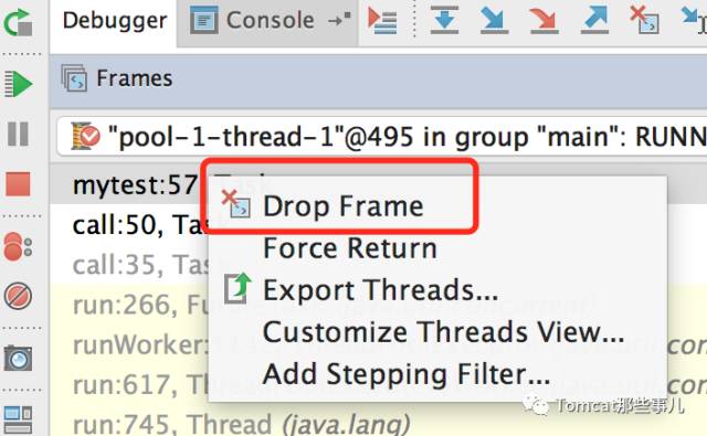 但是需要注意的是: 已经改变的变量值不会恢复。比如你向当前调用方法里传入了一个List,并且在方法中向List里添加了新的数据,那么即使通过Drop Frame退回到上一个函数, List中仍然包含添加的数据, 而不会恢复到之前的状态。