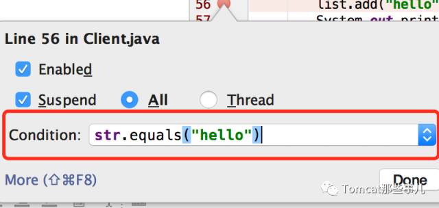 其实,在添加断点的时候,我们可以为断点增加一定的条件,这样,在指定的条件满足时,断点才会生效。