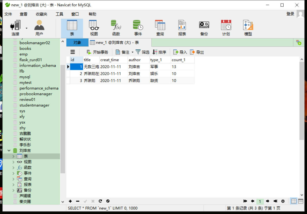 db = DBUtil('39.98.39.173', 13306, 'root', 'root', '刘烽吉')