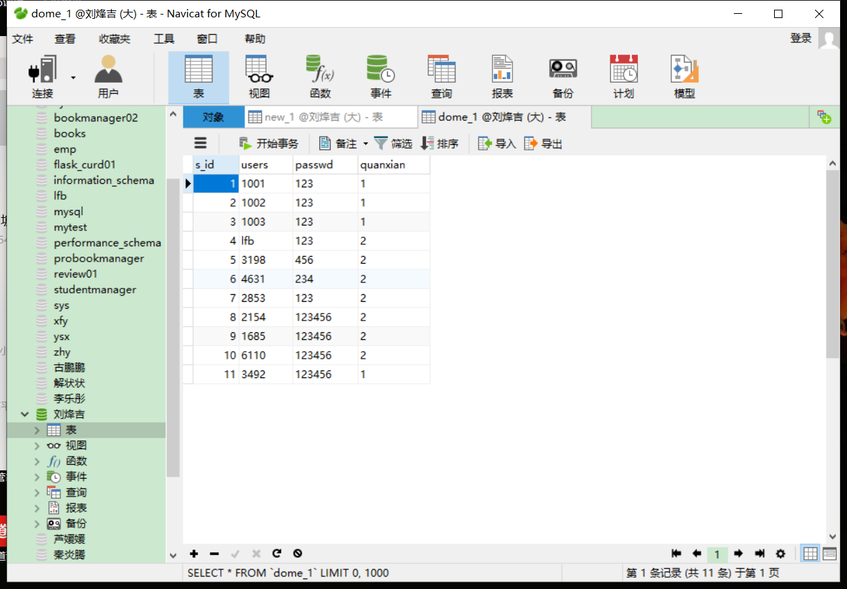 sql = "select quanxian from dome_1 where users = %s and passwd = %s"