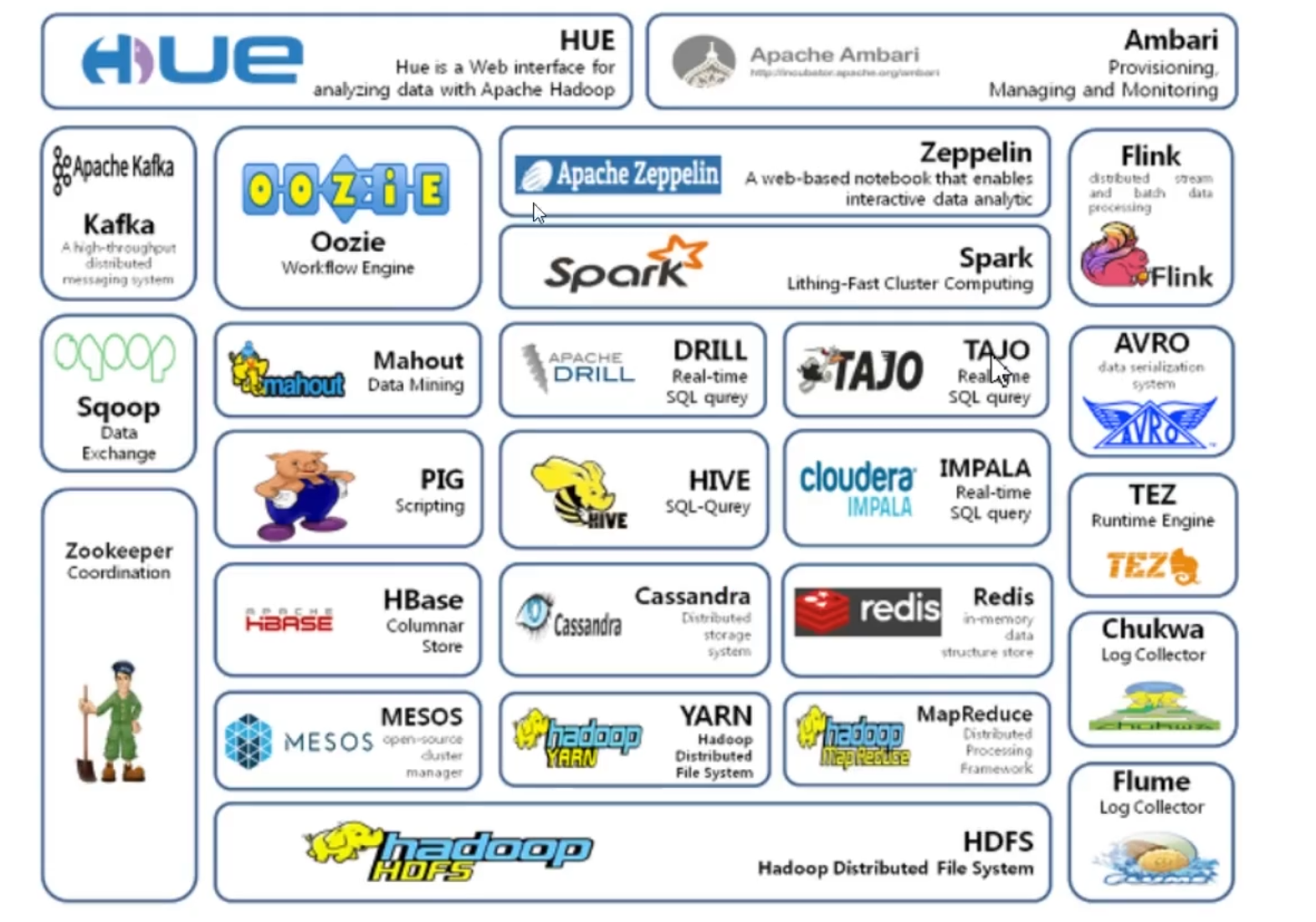 - Hadoop 3.x - 可以使用Hive,pig,Tez,Hama,Giraph和其他Hadoop工具。