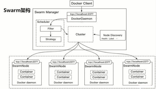 Swarm是Docker公司推出的用来管理docker集群的平台,几乎全部用GO语言来完成的开发的,代码开源在https://github.com/docker/swarm;Docker Swarm 和 Docker Compose 一样,都是 Docker 官方容器编排项目,但不同的是,Docker Compose 是一个在单个服务器或主机上创建多个容器的工具,而 Docker Swarm 则可以在多个服务器或主机上创建容器集群服务,对于微服务的部署,显然 Docker Swarm 会更加适合。