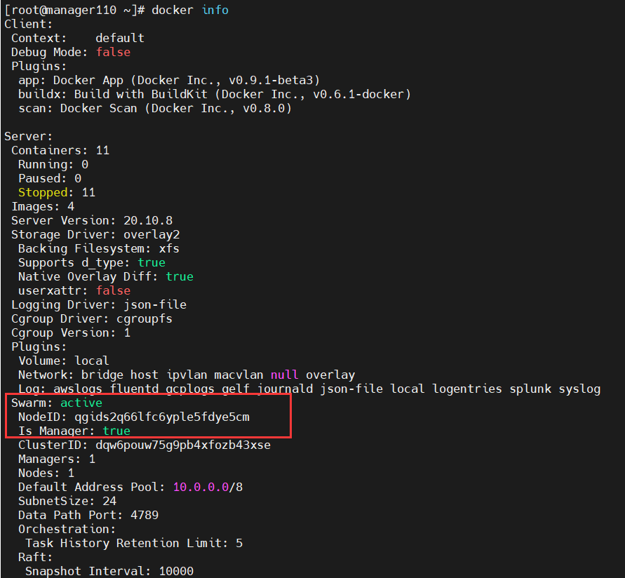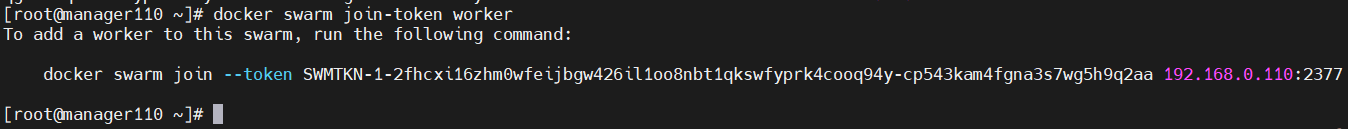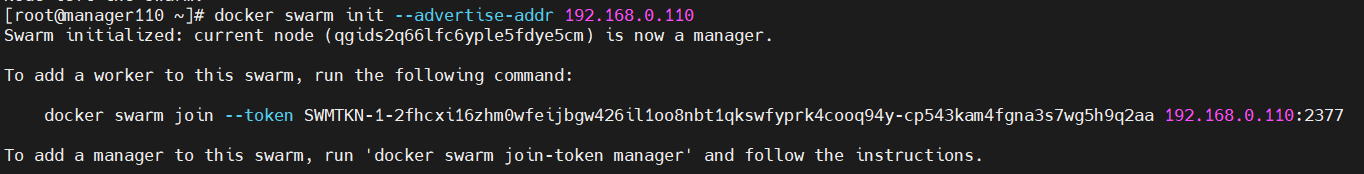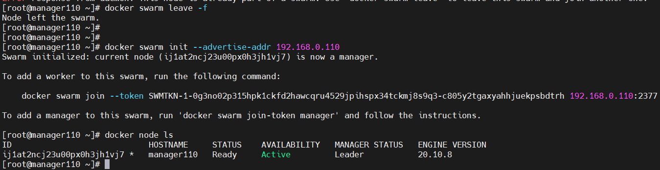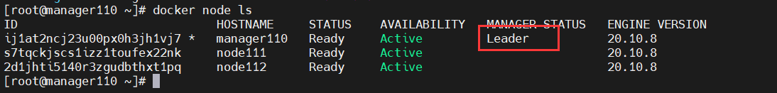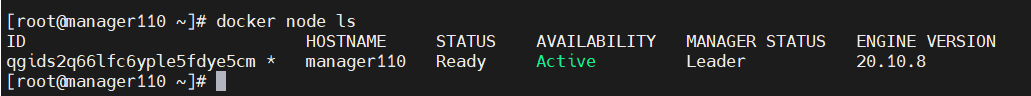 IP:192.168.0.110 主机名:manager110 担任角色:swarm manager
