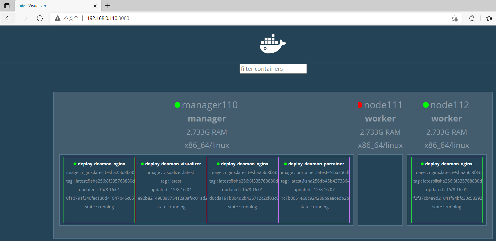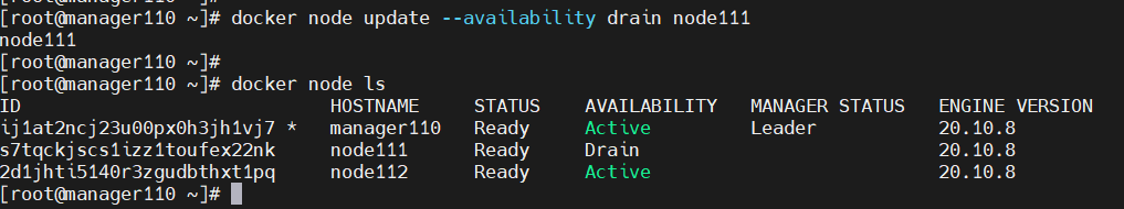 IP:192.168.0.111 主机名:node111 担任角色:swarm node