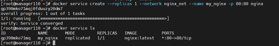 - docker service create:我们通过docker service create这个命令去创建一个服务。