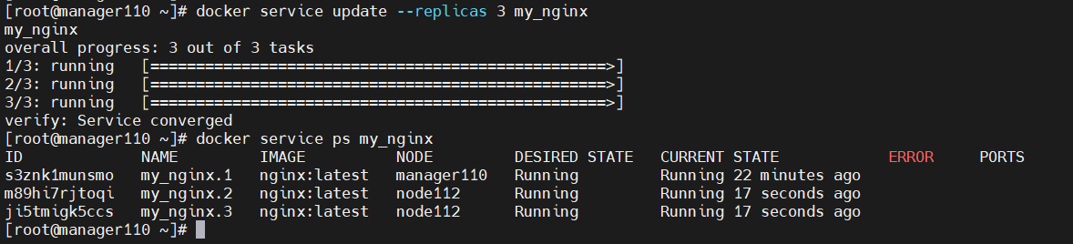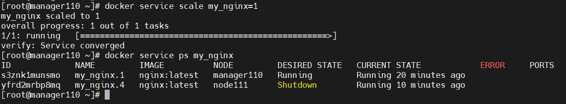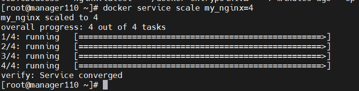 Swarm Cluster不光只是提供了优秀的高可用性,同时也提供了节点弹性扩展或缩减的功能。当容器组想动态扩展时,只需通过scale参数即可复制出新的副本出来。
