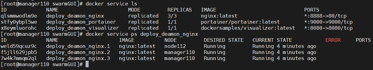 如果有需求想在每台节点上都run一个相同的副本,方法其实很简单,只需要在命令中将"--replicas n"更换成"--mode=global"即可!