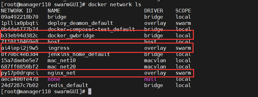 在初始化或刚加入Swarm集群时,会创建一个Ingress和 docker-gwbridge网络
