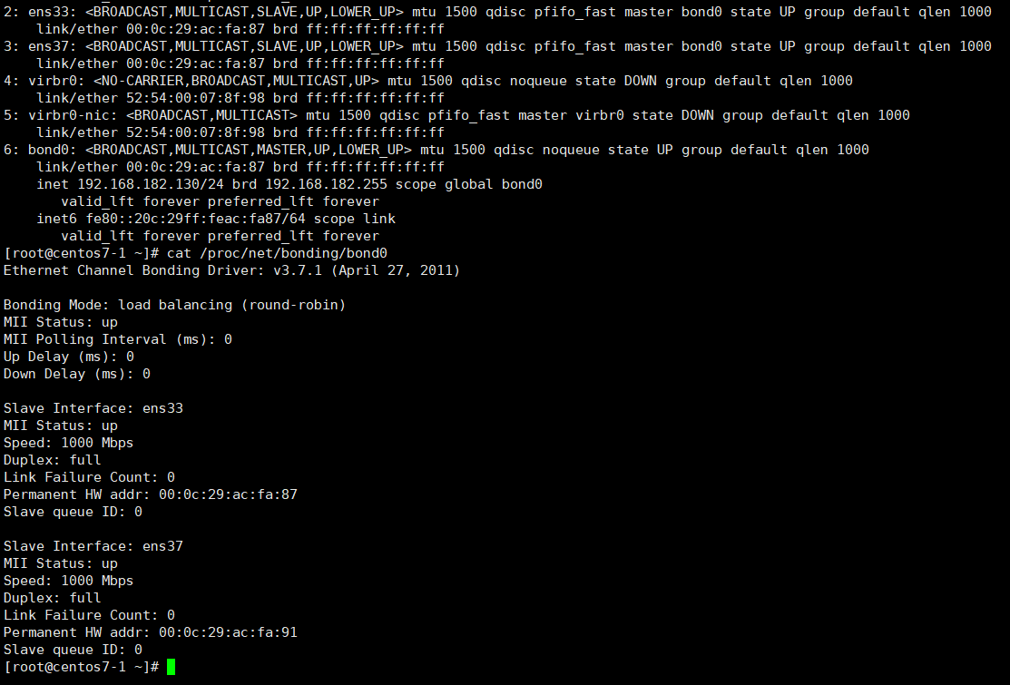 $ echo 'ifenslave bond0 ens33 ens37' >> /etc/rc.d/rc.local