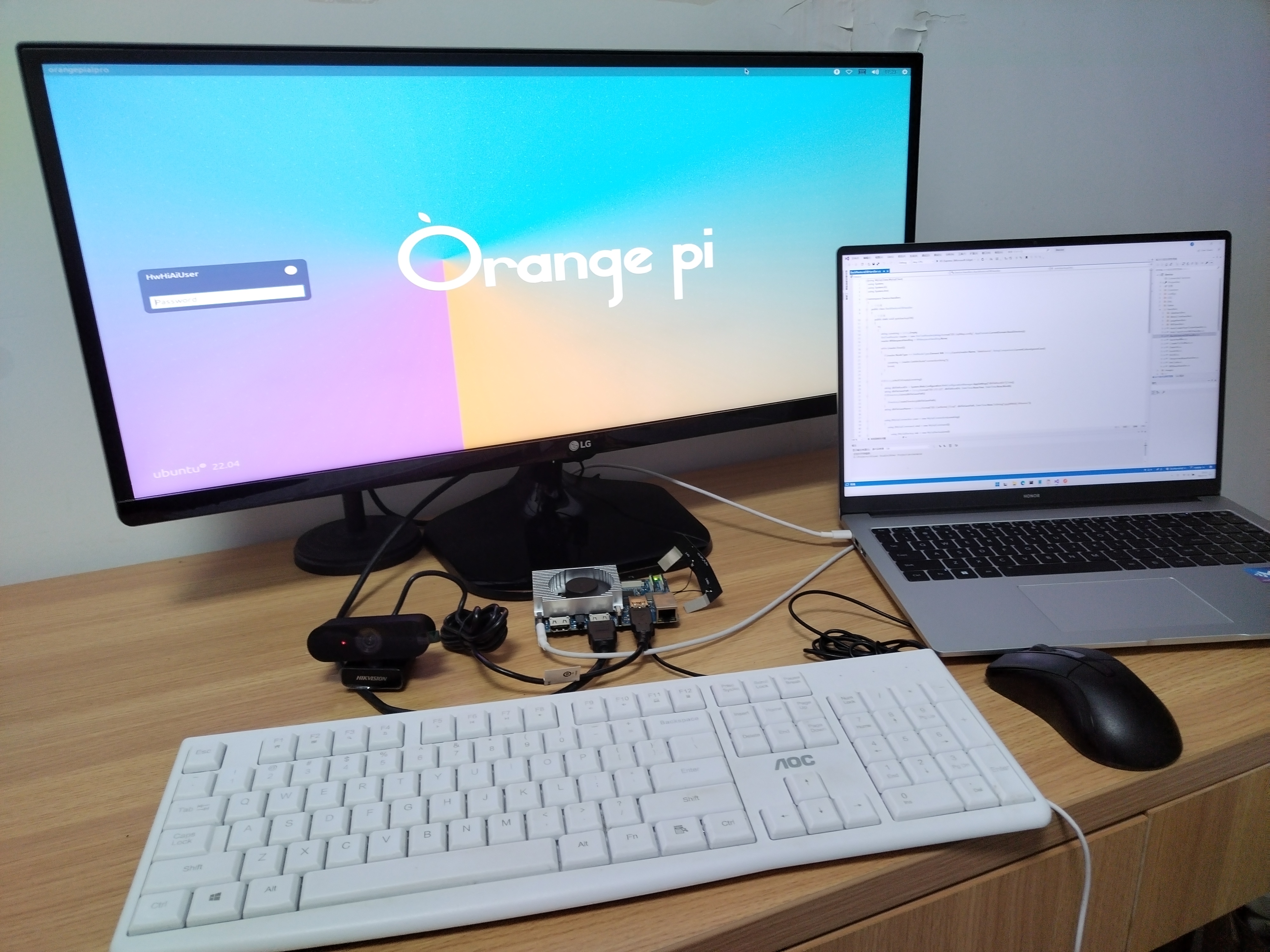 使用显示器和键盘登录香橙派,默认登录名为 HwHiAiUser,密码为 Mind@123。