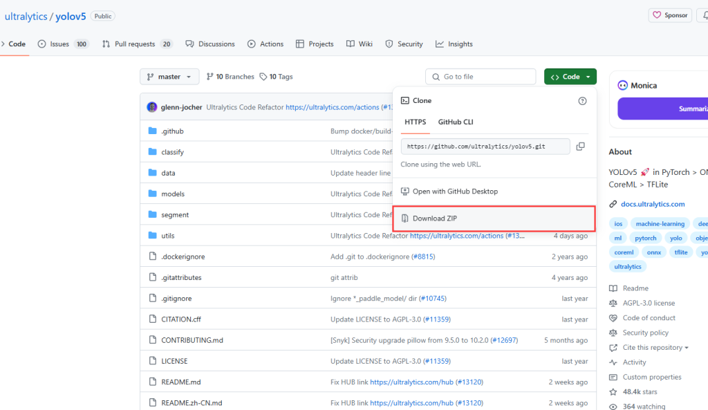 GitHub上下载yolov5