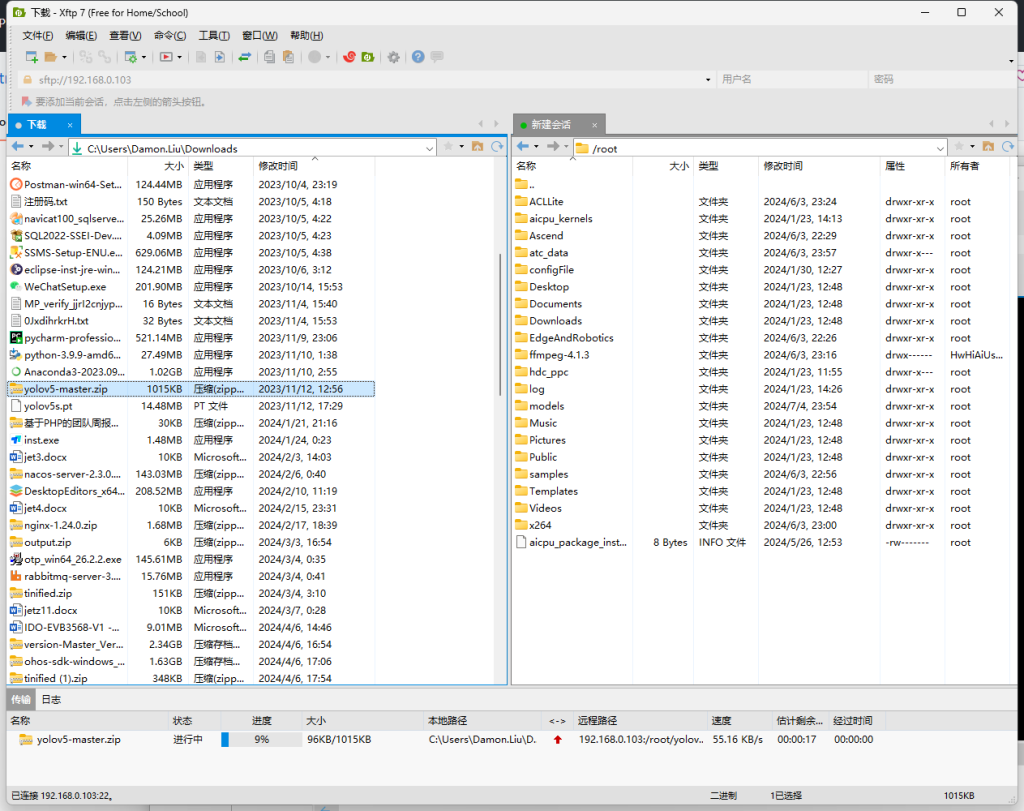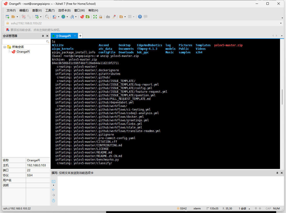 通过Xftp连接香橙派,将内容拷入。