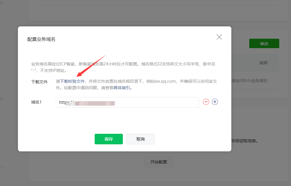 访问小程序管理平台,管理>开发管理里配置业务域名,点击下载校验文件。