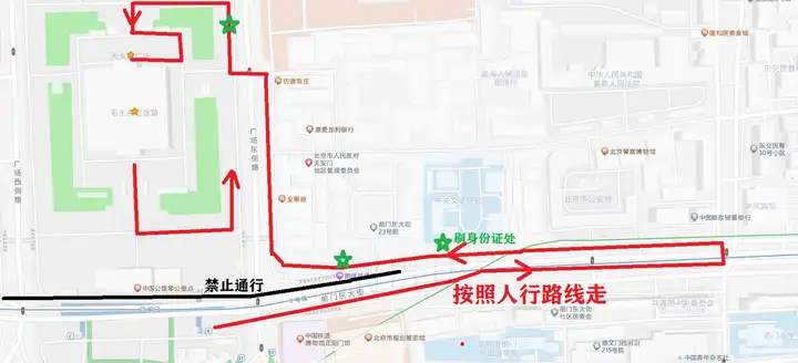 现在人多,让绕行,建议从天安门那边走。