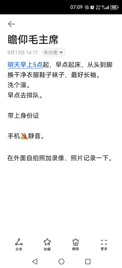 先把信息写完,认证通过。之后每天时不时就刷一刷,我约了三四年了,昨天运气好,突然约到了前一天的。太高兴了。今天早上5点就起了,洗了澡,换了一身干净衣服和鞋袜(要重视,要对伟人尊敬)就出发了。