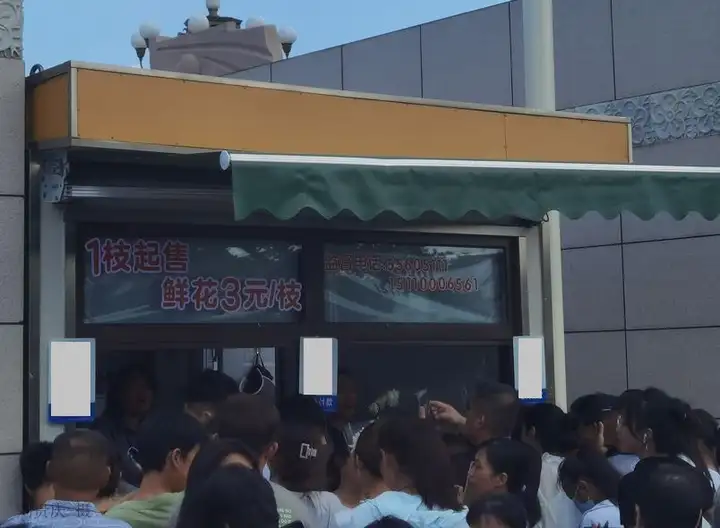 旁边有卖花的,可以买三支:(三支一束,按束卖,可以扫码支付)