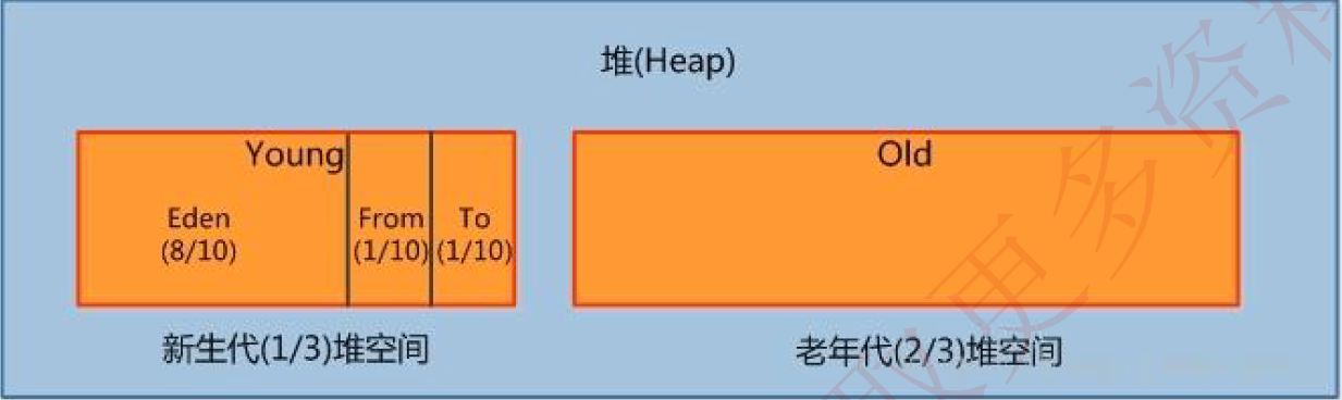 (1)Eden区:新生对象出生地。Java虚拟机使用新生代中的Eden区和其中的一块from/to区。在经过一次Minor GC之后,把Eden区中和survivor中还存活的对象一次性复制到另一块survivor空间上,最后清理掉刚才用过的survivor区和Eden区。这些存活下来的对象,在达到一定的年龄之后或者survivor区满的时候会直接被送如老年区。