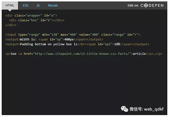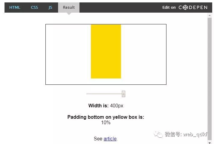 注意当我们滑动滑块的时候,只是改变了父层容器的宽度,但是padding-bottom的值却产生了变化。