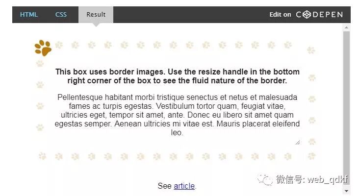 如果你不喜欢阅读英文,你可以阅读我早前写的一篇关于CSS3的border-image的基础教程。——@大漠