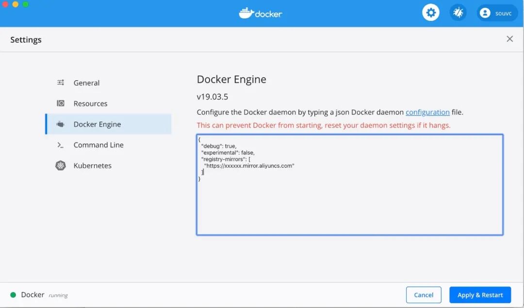 点击 Apply & Restart按钮,等待Docker重启并应用配置的镜像加速器。