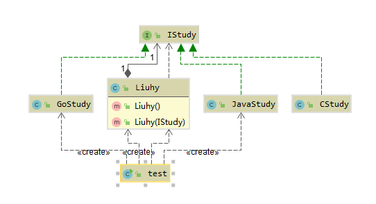 package com.liuhy.sdp.dip; /** * Created on 2020/5/30. * * @author haiyu Liu */ public class CStudy implements IStudy{ @Override public void study() { System.out.println("liuhy学习C"); } } package com.liuhy.sdp.dip; /** * Created on 2020/5/30. * * @author haiyu Liu */ public class GoStudy implements IStudy { @Override public void study() { System.out.println("liuhy学习GO"); } } package com.liuhy.sdp.dip; /** * Created on 2020/5/30. * * @author haiyu Liu */ public class JavaStudy implements IStudy { @Override public void study() { System.out.println("liuhy学习JAVA"); } } package com.liuhy.sdp.dip; /** * Created on 2020/5/30. * * @author haiyu Liu */ public interface IStudy { void study(); } package com.liuhy.sdp.dip; /** * Created on 2020/5/30. * * @author haiyu Liu */ public class Liuhy { //最少知道 private IStudy iStudy; public Liuhy() { } public void studyJava(){ System.out.println("liuhy在学习JAVA"); } public void studyGo(){ System.out.println("liuhy在学习GO"); } public void studyC(){ System.out.println("liuhy在学习C"); } public void dostudy(IStudy iStudy){ iStudy.study(); } public Liuhy(IStudy iStudy){ this.iStudy=iStudy; } public void dostudy(){ this.iStudy.study(); } } package com.liuhy.sdp.dip; /** * Created on 2020/5/30. * * @author haiyu Liu */ public class test { public static void main(String[] args) { //如果liuhy要学习AI了,怎么办?,还要创建一个方法,那么在实现的地方及调用的地方都需要修改 Liuhy liuhy=new Liuhy(); liuhy.studyJava(); liuhy.studyGo(); liuhy.studyC(); //因此抽象了一下顶层接口,在liuhy类中加入dostudy liuhy.dostudy(new JavaStudy()); //另外还可以在构造方法时,传入类的方式,依赖注入 liuhy.dostudy(new GoStudy()); liuhy.dostudy(); } }