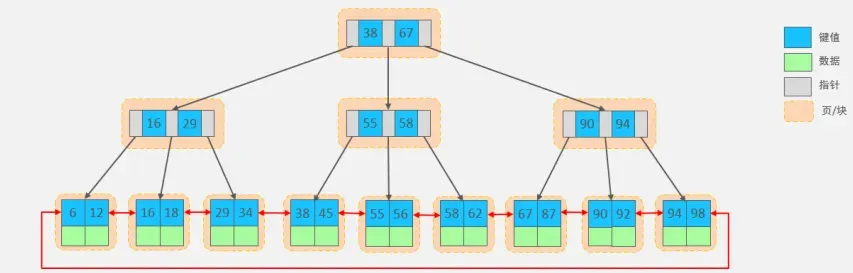 为了能快速的从磁盘中检索出数据,InnoDB采用 B+树 结构来组织数据,通过 B+树 组织起来的结构大概就像下图这个样子。InnoDB存储引擎表是索引组织的,数据即索引,索引即数据。