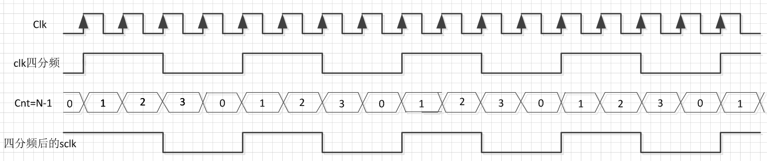当分频系数N = sys_clk/scl_clk(系统系统时钟频率/模块所需时钟频率)为偶数时:(只能实现2,4,6,8......128分频)