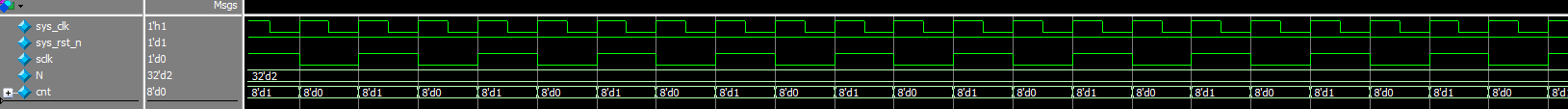 当N=2,分频系数为2时下的仿真波形: