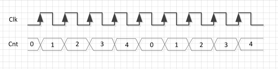 上图为cnt计数器计数N = 5个数的波形;即 cnt < N - 1 ;