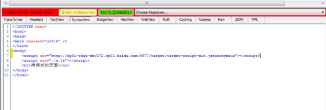 5 在请求中,加入调试的weinre js,如图7.3.4,并点击Run to Completion进行完成。