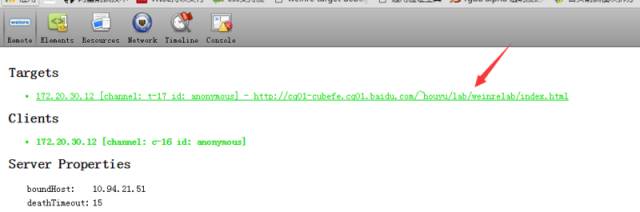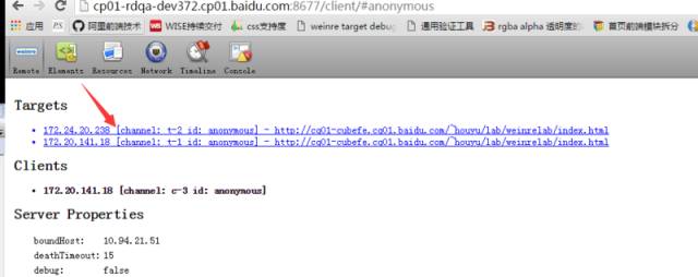 6 我们回到weinre调试界面,就能看到新的客户端接入了weinre调试了,如图7.3.5