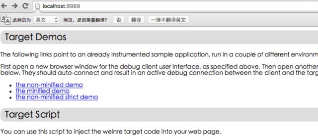 刚刚说了,weinre虽然万能,但是调试的前提是在页面中注入一段weinre的js才行。那么如果想要调试线上页面,该如何是好呢?