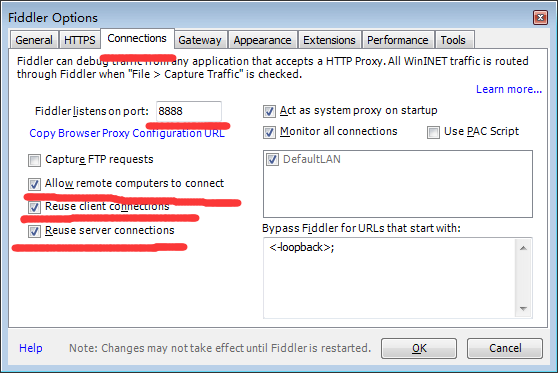 4 打开fiddler,选择fiddler options->connections->allow remote computers to connect,如图7.2.4/图7.2.5