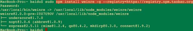 sudo npm install weinre -g --registry=https://registry.npm.taobao.org