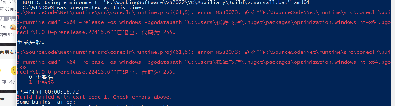 然后自己又想起以前编译net core 3.1 源码 时也有类似情况。就先一个一个编译,直接到src/coreclr 运行build-runtime.cmd,ok。然后在返回运行build.cmd。