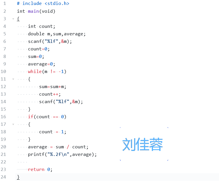 数据表达:用了整型变量count,浮点型变量m,sum,average。