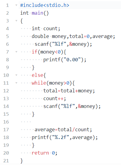 题目内容描述:用户购买了若干个商品(商品数不超过10),现在,他告诉你每件商品的价格,你计算出这些商品的平均价格。